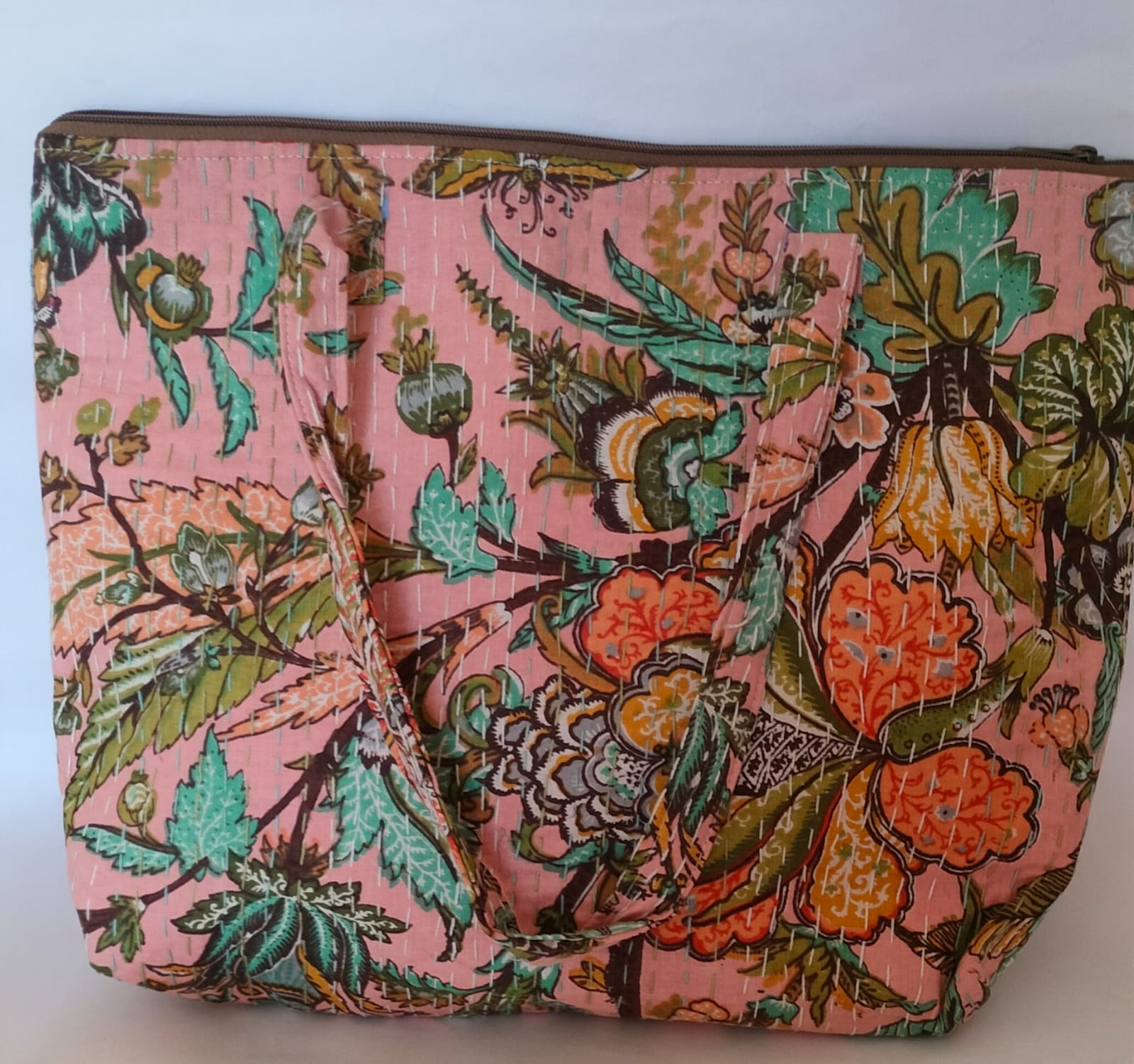 Bring together tradition and contemporary style with our beautifully handcrafted Kantha stitch tote bag. Designed for everyday elegance, this bag blends artisanal craftsmanship with a vibrant, modern print.