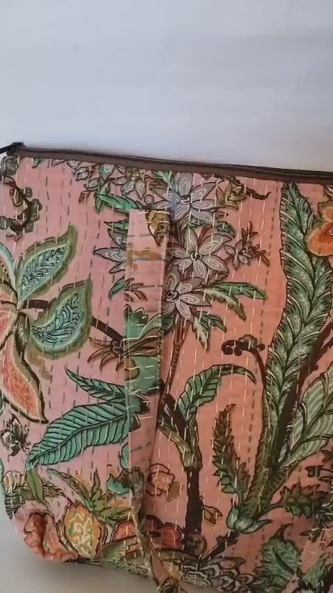 This bag is inspired by the timeless art of Kantha embroidery, a heritage craft from India where layers of fabric are stitched together using delicate running stitches. Each bag carries the charm of handmade artistry and sustainable design.